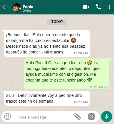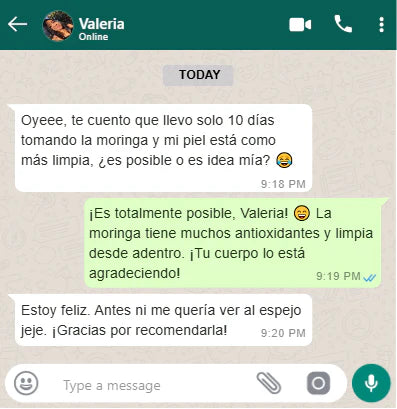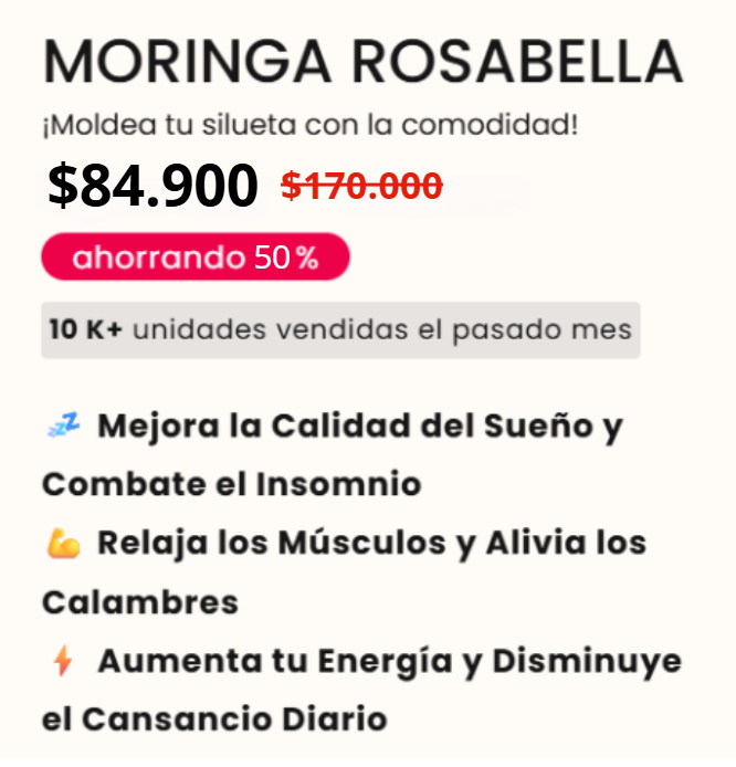 Rosabella Moringa está formulada con ingredientes naturales, por lo que no tiene efectos secundarios comunes. Sin embargo, si tienes alguna condición médica preexistente o estás tomando otros medicamentos, te recomendamos consultar a tu médico antes de iniciar el consumo.