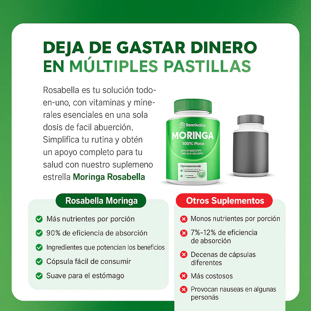 Rosabella Moringa ayuda a mejorar tu nivel de energía, refuerza el sistema inmunológico, promueve una piel saludable y optimiza la función digestiva. Además, tiene propiedades antioxidantes que combaten los efectos del envejecimiento.